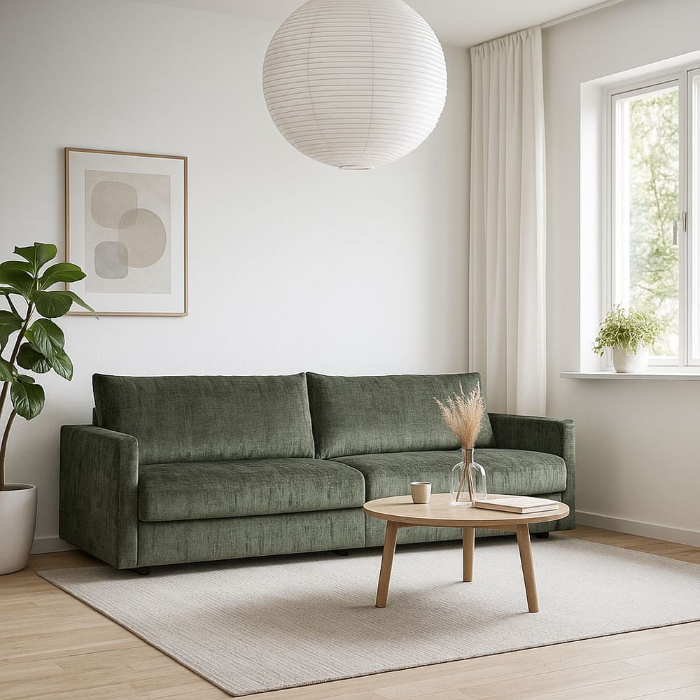 Sohvan pehmuste on korkealaatuista HR-50 vaahtomuovia ja silikonoitua vanua.
