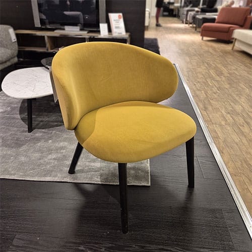 Connubian Tuka-nojatuolin pyöreä selkänoja kiertyy tyylikkäästi sivuille muodostaen mukavan ja esteettisesti erittäin miellyttävän kokonaisuuden.