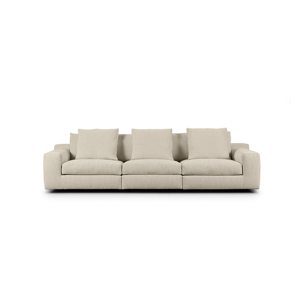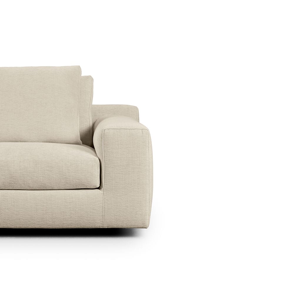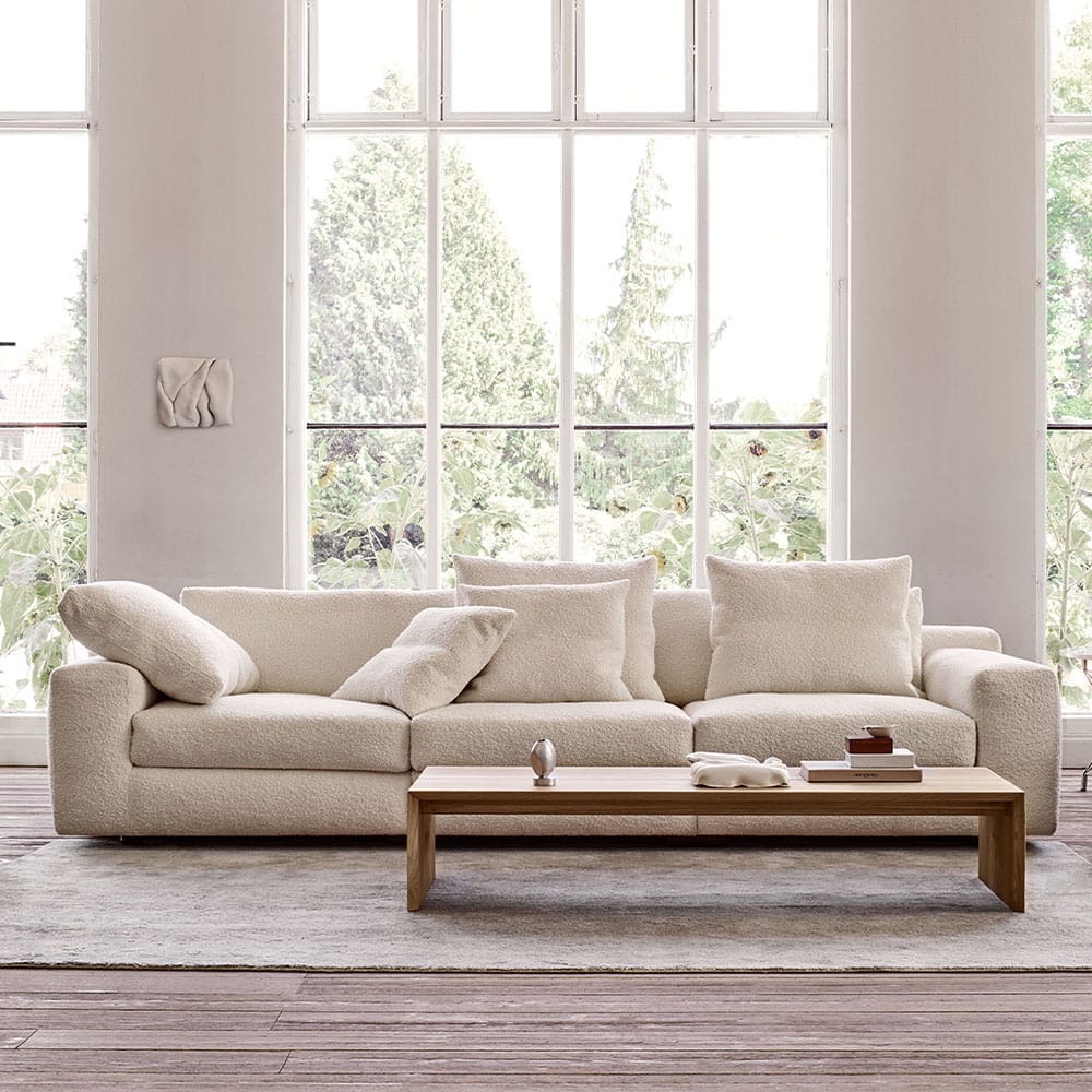 Suunnittelija Jens Juul Eilersenin tavoitteena oli pehmeä, pyöreä sohva, jossa on moderni ja klassinen tunnelma. Vaalean beige kangas viimeistelee tyylin kauniisti.
