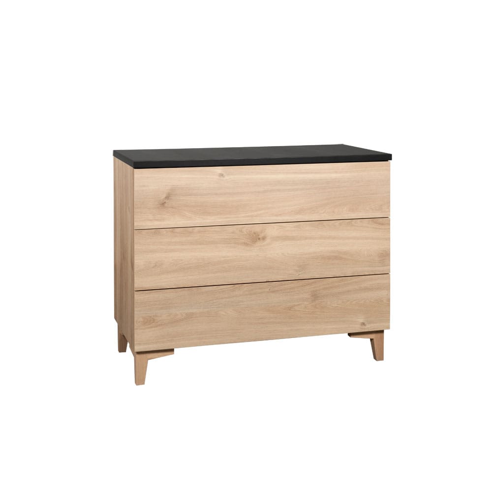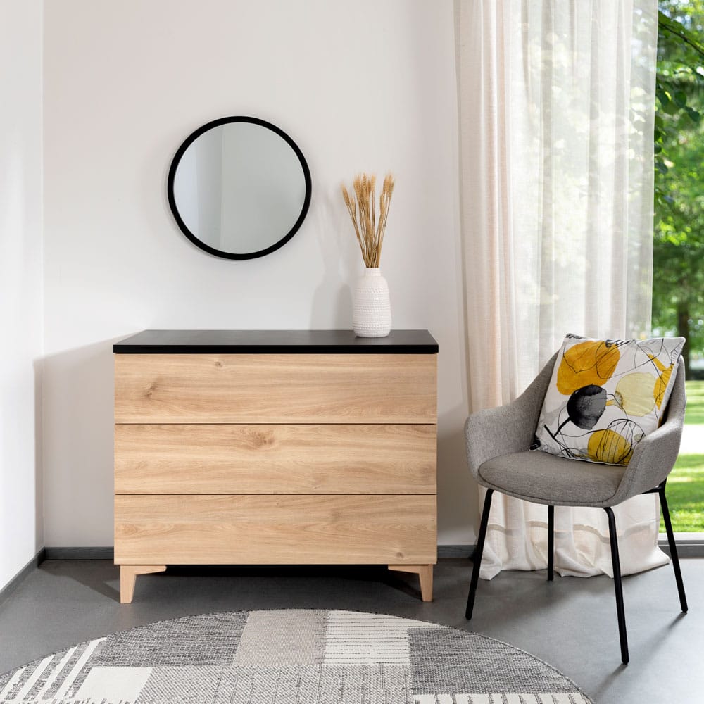 Lipaston runko on valmistettu tammiseksi käsitellystä MFC-kalustelevystä, ja lipaston kansi on mustaksi maalattua MDF-levyä. Kokonaisuuden täydentävät kauniisti muotoillut, massiivipuiset jalat.