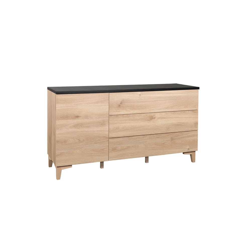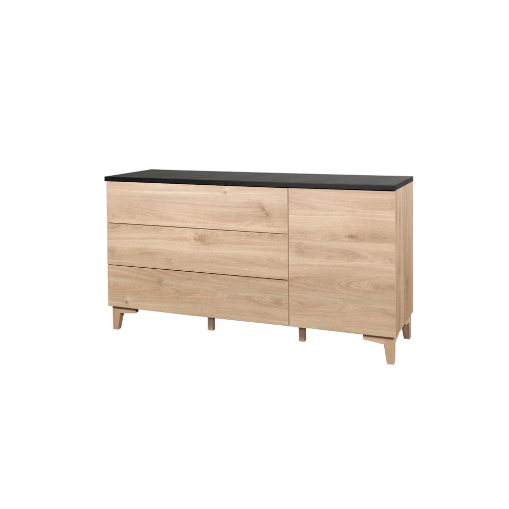 Hiipakan Niklas-senkki N3.3 on varustettu kaapilla ja kolmella tilavalla laatikolla. Laatikoissa ja kaapissa on soft close -mekanismi, joka ehkäisee kaappien naarmuuntumista käytössä. Lisäksi se tekee huonekalun käytöstä miellyttävää. Laatikot avautuvat kevyesti painamalla.