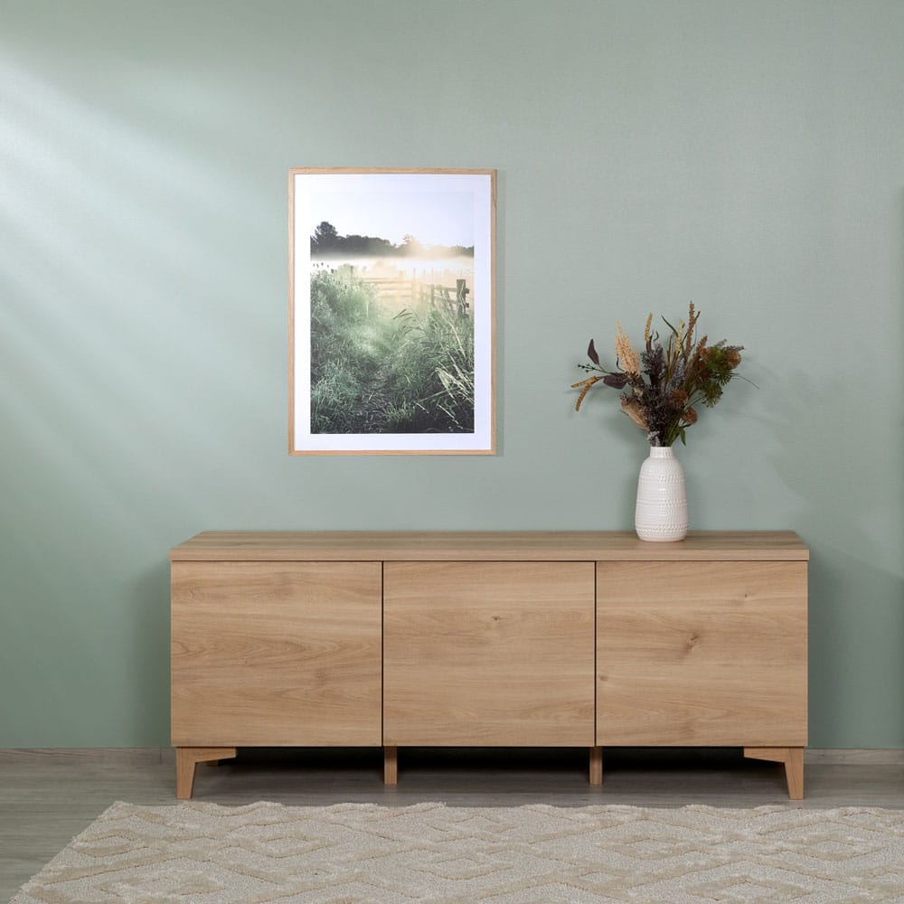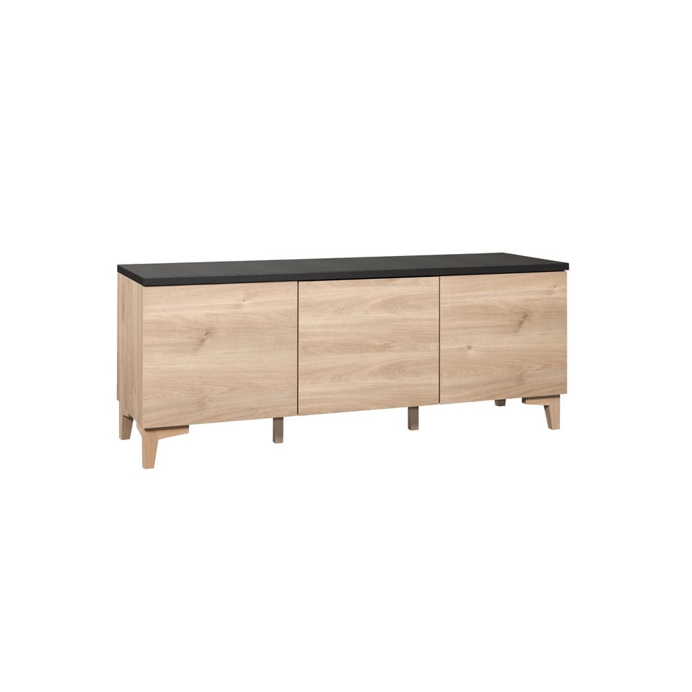 Hiipakan kaunis Niklas tv-taso N5.2 hehkuu lämpimässä tammen sävyssä. Tv-taso on saatavilla kahdessa sävyssä, sillä kansiväriksi voi valita joko tammen tai mustan.