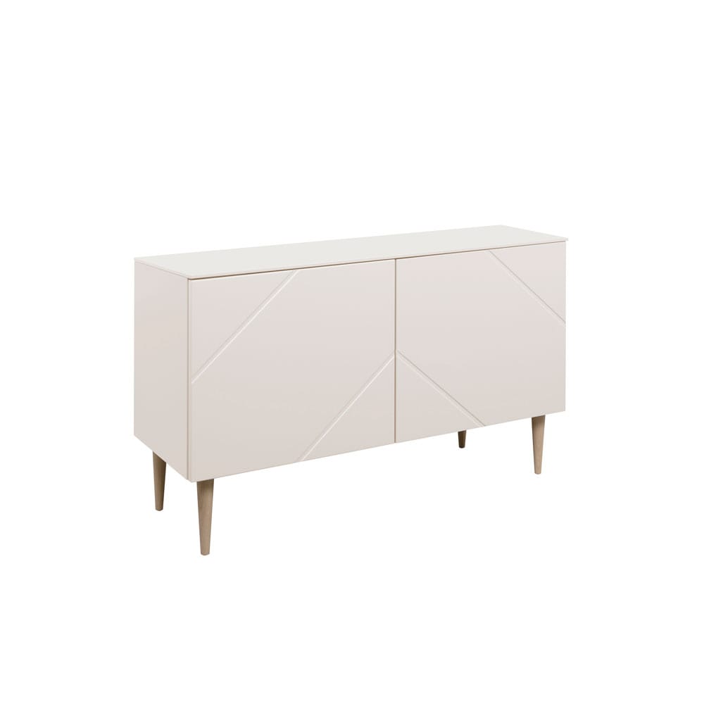 Tason runko on maalattua MFC-levyä, kansi ja etuleyt maalattua MDF-levyä ja jalat tammea.