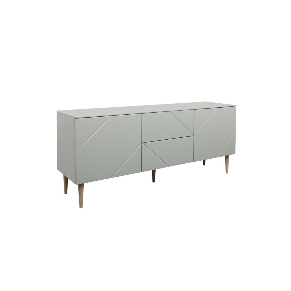 Oliivin vihreä Vilja-tv-taso on kaunis valinta nykyaikaiseen, kodikkaaseen kotiin. Tv-tason leveys on 150 cm ja siinä on kaksi kaappia ja kaksi vetolaatikkoa.
