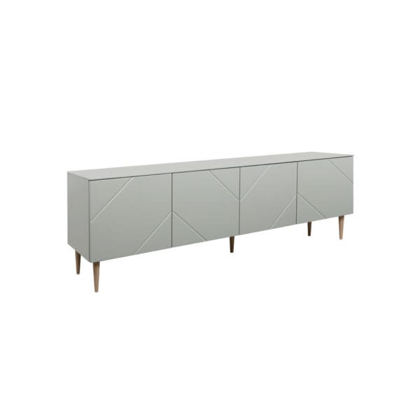 Oliivin sävyinen Vilja-tv-taso tuo pehmeää väriä ja toimivan säilytysratkaisun kotiin. Tv-taso sisältää neljä kaappia, joiden sisässä on kussakin yksi välihylly. Soft close -mekanismi ehkäisee ovien kolinaa ja tekee huonekalun käyttämisestä erittäin miellyttävää.
