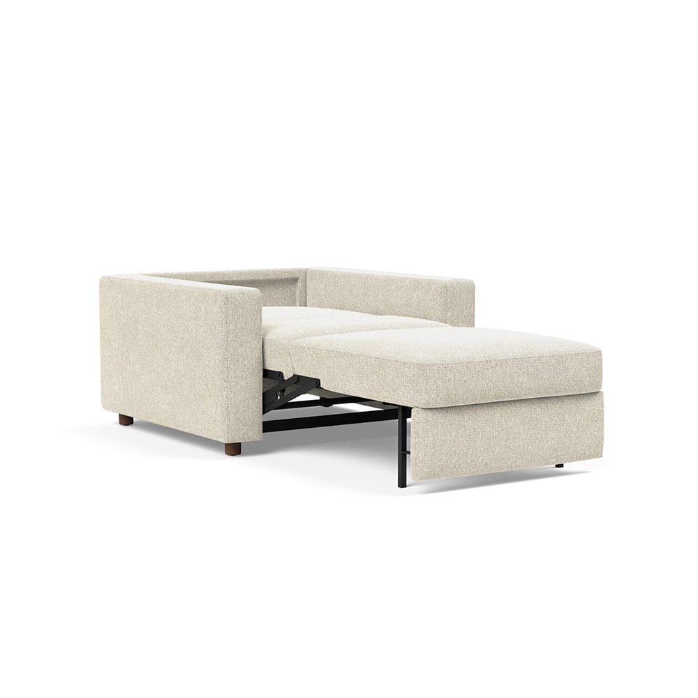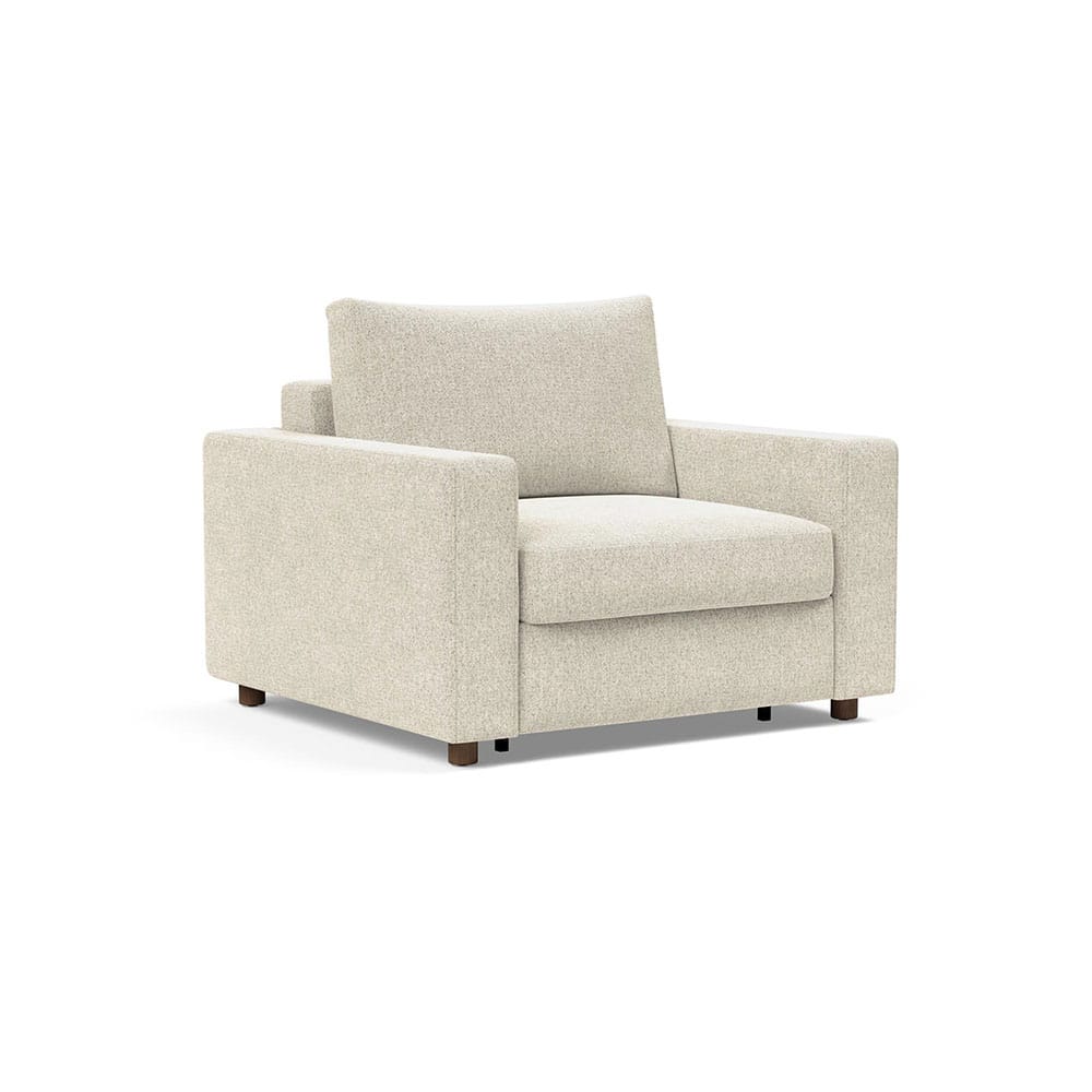 Innovation Living Neah-vuodetuoli on helppokäyttöinen, levitettävä nojatuoli. Luonnonvalkoinen kangasverhoilu tuo harmoniaa tilaan. Vuodemekanismin käyttö on helppoa: nosta vain istuinosaa ylös ja eteen ja kaada selkänoja alas.