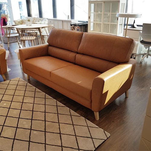 Tyylikkäät Paanu-sohvat on valmistettu Suomessa. Tavallista korkeampi selkänoja antaa selälle tukea. Tyylikkäissä sohvissa on konjakinruskea verhoilu ja tammijalat. Sohvien istuinosat ovat aitoa nahkaa ja tausta on keinonahkaa.
