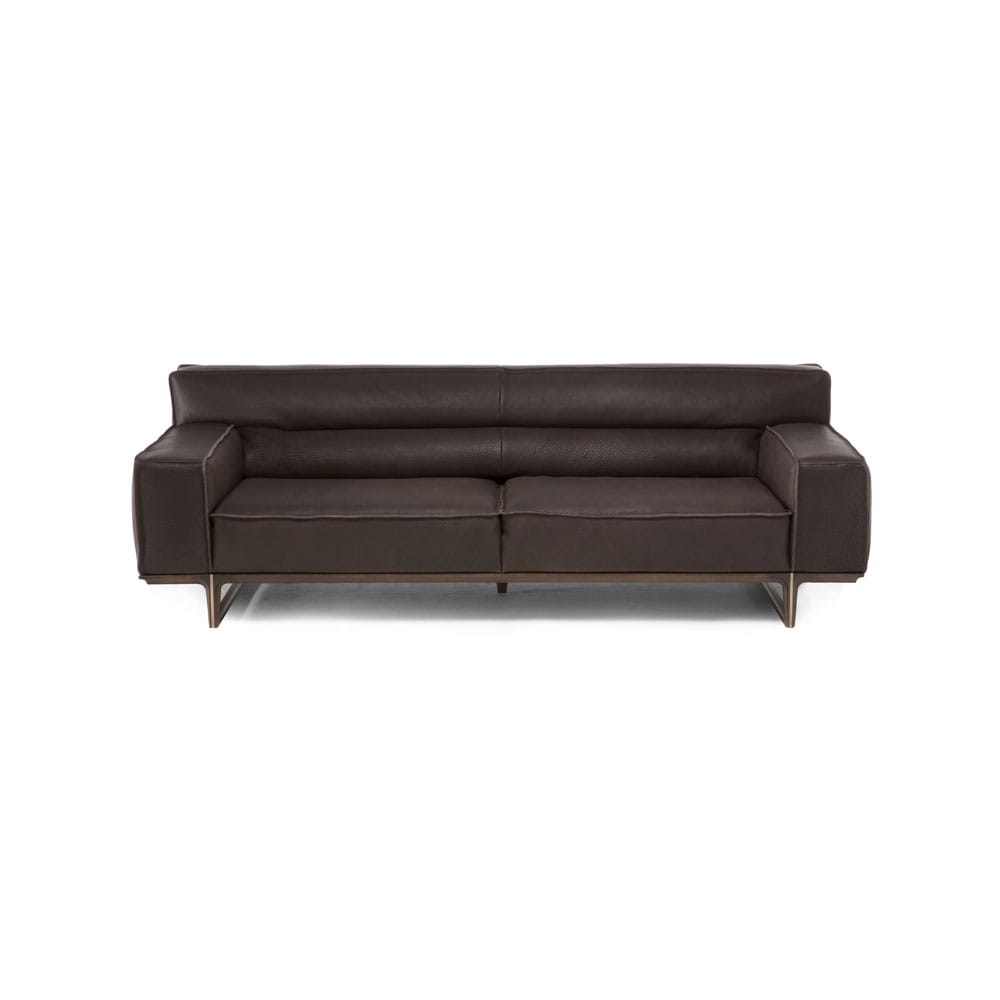 Natuzzi Italian kaunis Kendo-sohva on täynnä tyylikkäitä yksityiskohtia. 3-istuttava nahkasohva on ostettavissa Kruunukalusteen verkkokaupasta tummanruskealla tai vaalealla nahalla verhoiltuna.