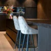Richmondin Imani-baarituoli on verhoiltu samettikankaalla ja tuolissa on sirot mustat metallijalat. Baarituolin ylellinen ilme syntyy jalkojen kullanvärisistä yksityiskohdista sekä selkäpuolen napituksesta. Kauniit yksityiskohdat tekevät tästä baarituolista huoneen keskipisteen.