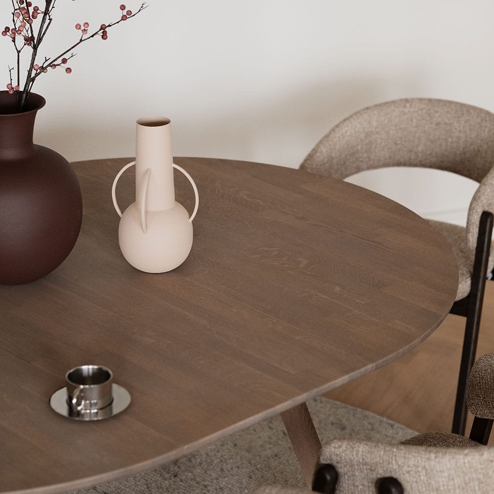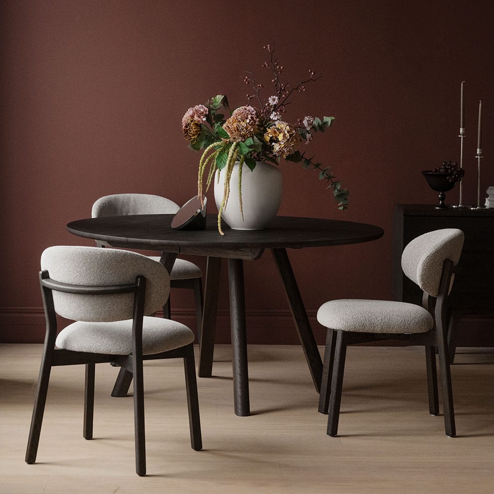 Pyöreä Clapperton-ruokapöytä tarjoaa arvokasta tyyliä, laatua ja helppokäyttöisen jatkomekanismin. Pöydän kansi on sormiliitettyä massiivitammea, ja pöydän tammi on 100 % FSC®-sertifioitua.