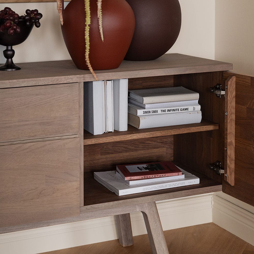 Cleardale-senkki on ajattoman tyylikäs, eurooppalaisesta FSC®-sertifioidusta tammesta valmistettu säilytysratkaisu. Senkin pehmeästi sulkeutuvat laatikot ja ovet tekevät sen käytöstä miellyttävää.