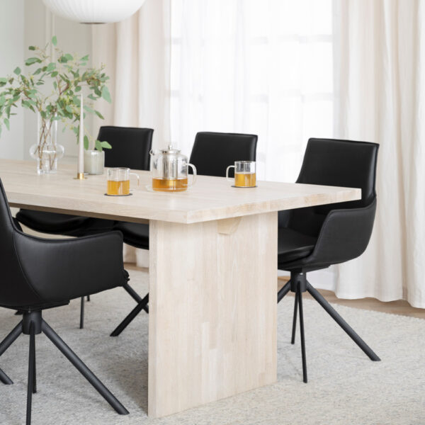 Tamminen, ruskea ja valkopesty pöytä 100 % FSC-sertifioitu, harjattu massiivitammi.
