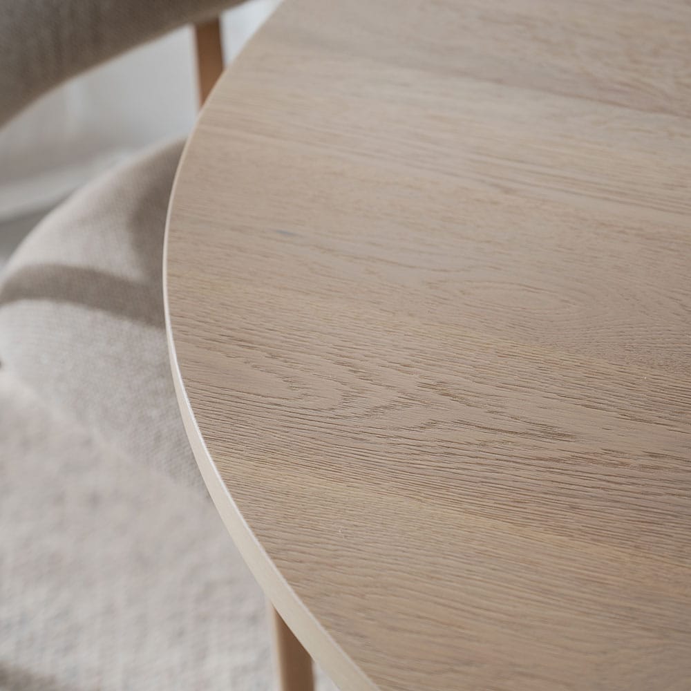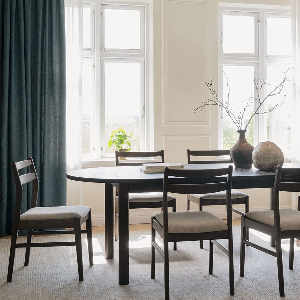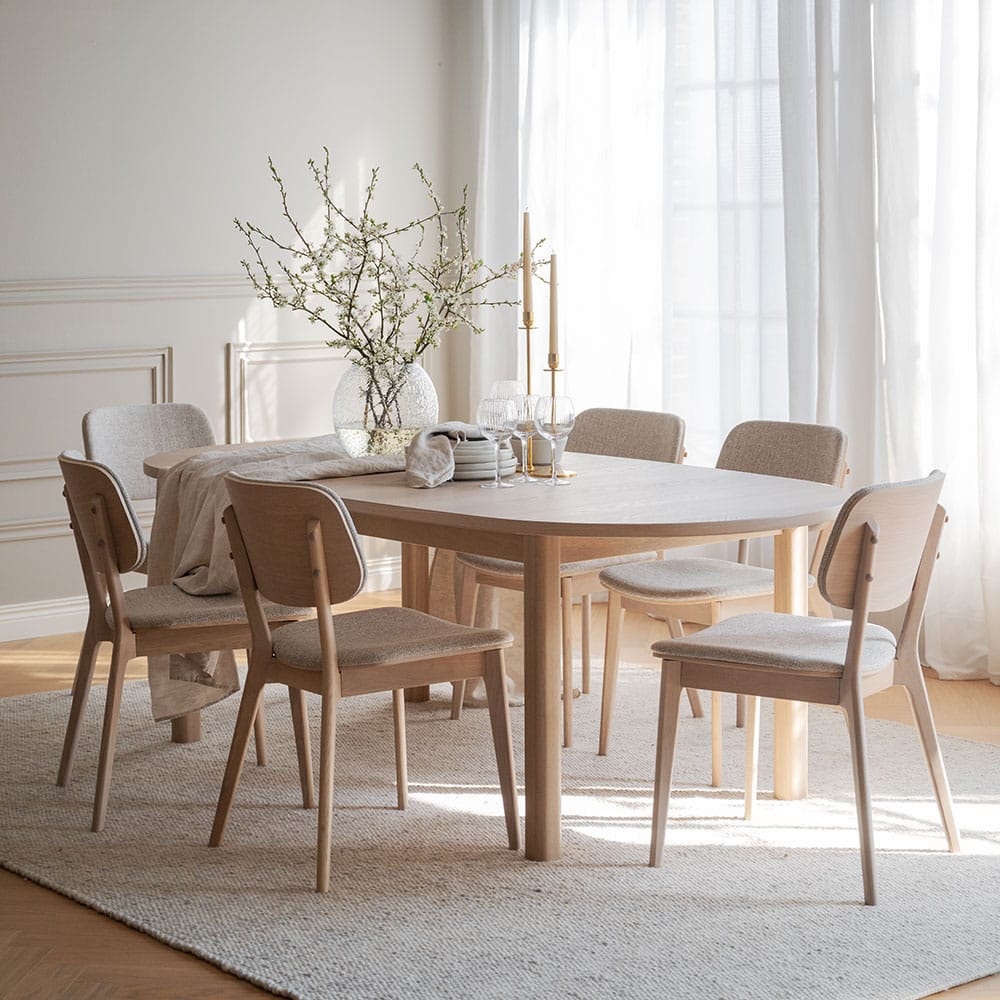 Gifford-ruokapöydässä on tavallista paksumpi viilupinta, mikä tekee siitä kestävän ja laadukkaan valinnan arkeen ja juhlaan.