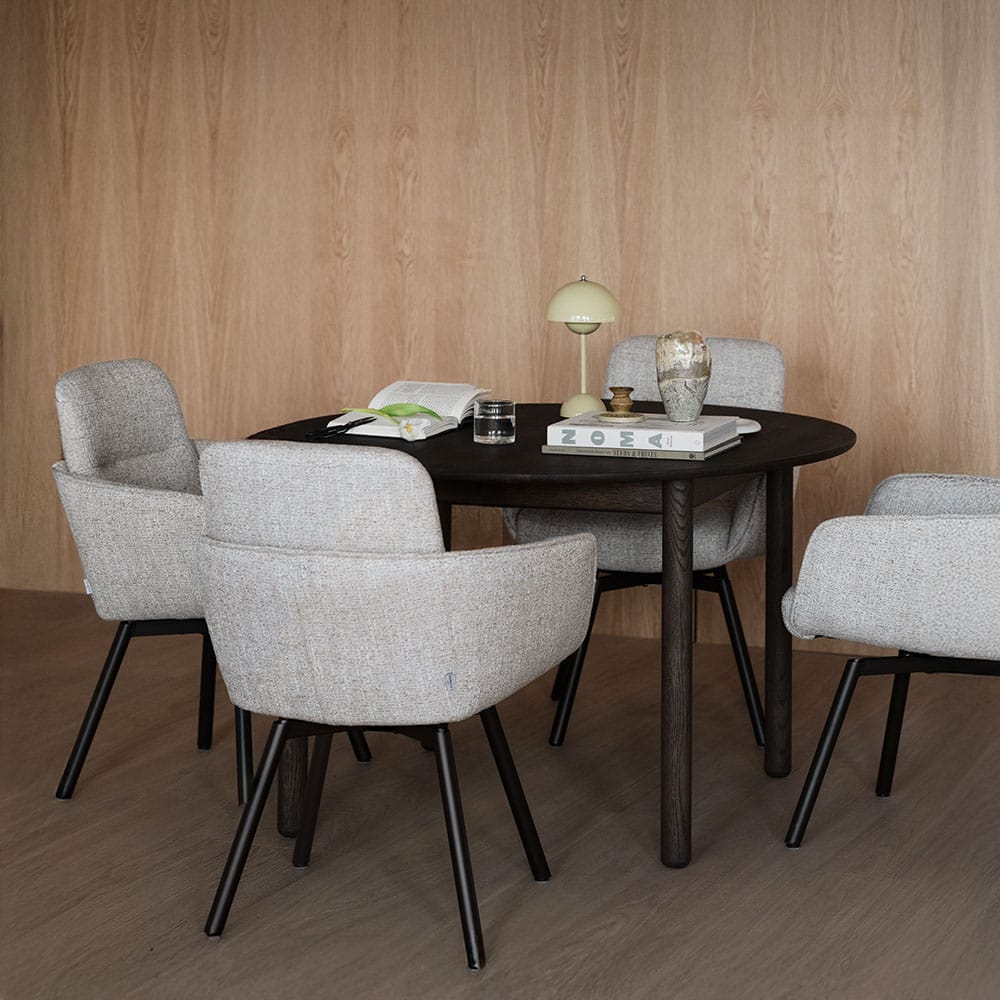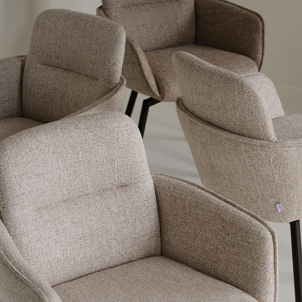 Roswell-käsinojatuoli on omiaan pitkiin päivällisiin ja esimerkiksi neuvotteluhuoneeseen. Tuolissa on 360° kääntyvä musta metallijalka ja pussijousitettu, pehmustettu istuin, mikä takaa täydellisen mukavuuden.