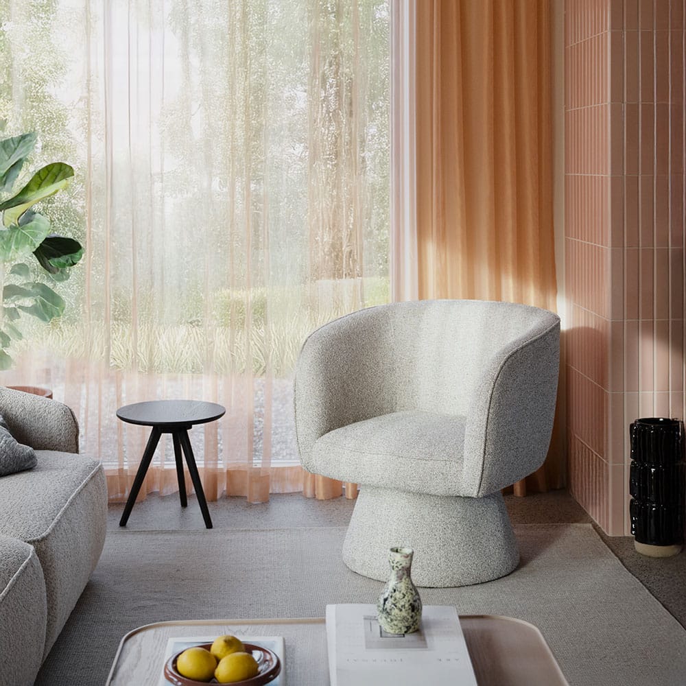 Shoreham-nojatuoli on kääntyvällä jalalla varustettu, kauttaaltaan verhoiltu nojatuoli, jonka moderni muotoilu ihastuttaa takuulla.