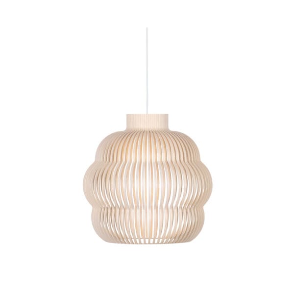 Secto Designin Kumulo 5200 -riippuvalaisin on kauniisti muotoiltu valaisin, jonka pilvimäinen muoto tuo keveyttä ja arvokkaan luonnollista ilmettä sisustukseen. Valaisin on valmistettu kotimaisesta muotoonpuristetusta koivusta.