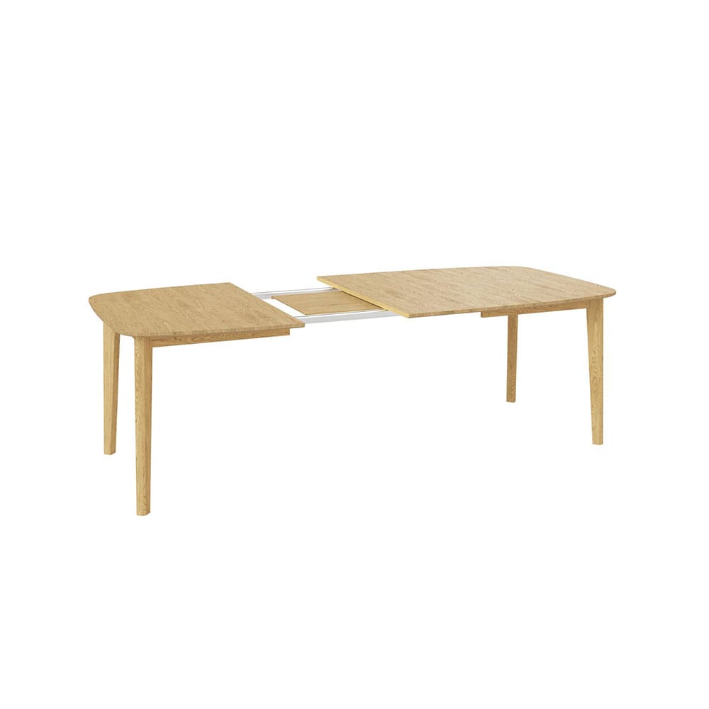 Skovbyn #118-ruokapöytä on suunniteltu pieneen ruokailutilaan, jossa kaivataan myös muunneltavuutta. Pöydän helppokäyttöinen jatkomekanismi tarjoaa lisätilaa esimerkiksi juhliin tai yllätysvieraita varten.