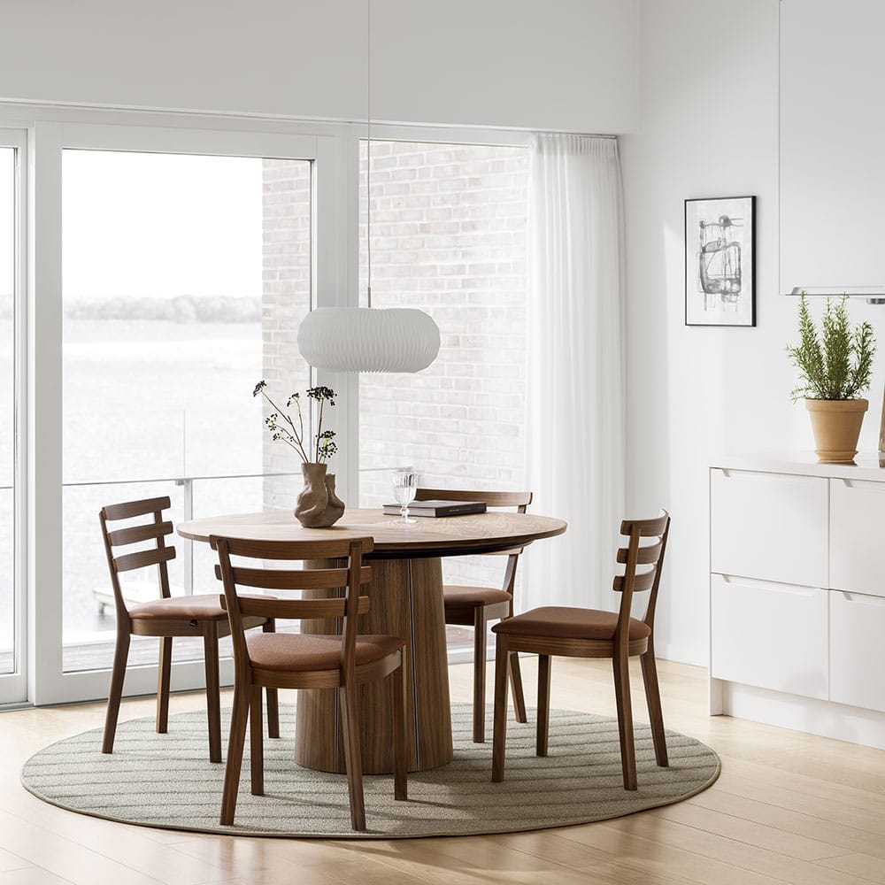 Skovbyn #46-tuoli tuo ruokailutilaan modernia, harkittua designia. Kolme kauniisti kaartuvaa tankoa seuraavat selän luonnollista muotoa ja tarjoavat erinomaisen tuen myös pidempiin istumishetkiin. Tämä tuoli on sekä katseenvangitsija että käytännöllinen arjen luottotuoli.