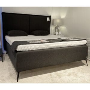 Sängyn verhoilu on tummanharmaata Dream-kangasta, jossa on kaunis buklee-pinta.