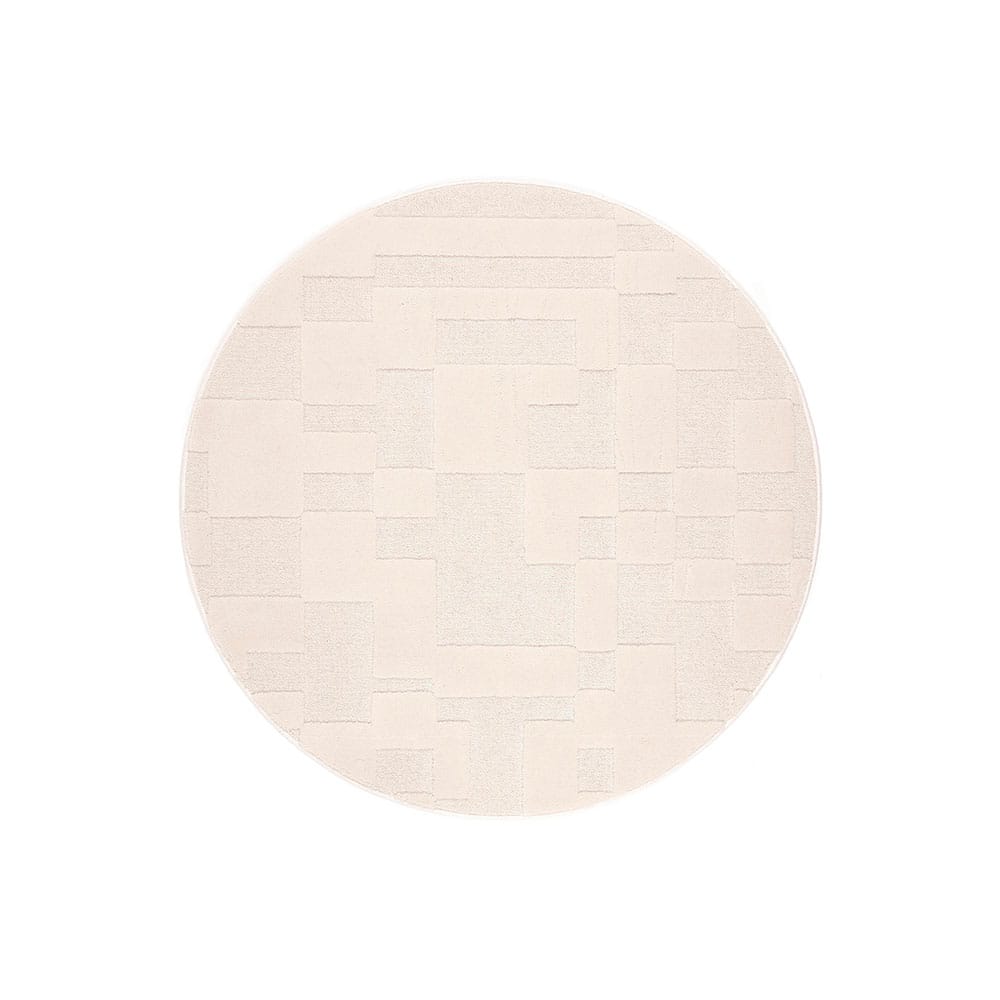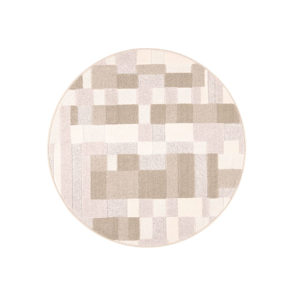 Pyöreä Domino-matto pehmentää tilan ja ihastuttaa elävällä pinnallaan. Maton erikorkuiseksi leikattu nukka luo pintaan kauniin, graafisen kuvion.